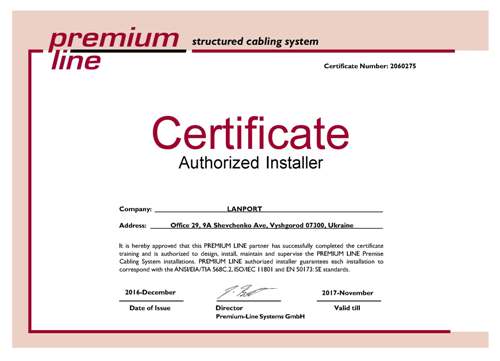 LANPORT сертифицированный инсталятор PREMIUM LINEКомпания LANPORT, получила статус сертифицированного инсталятора PREMIUM LINE. Теперь мы можем предоставлять системную гарантию на СКС созданную на компонентах PREMIUM LINE до 25 лет! На данный момент мы являемся сертифицированными инсталяторами ...