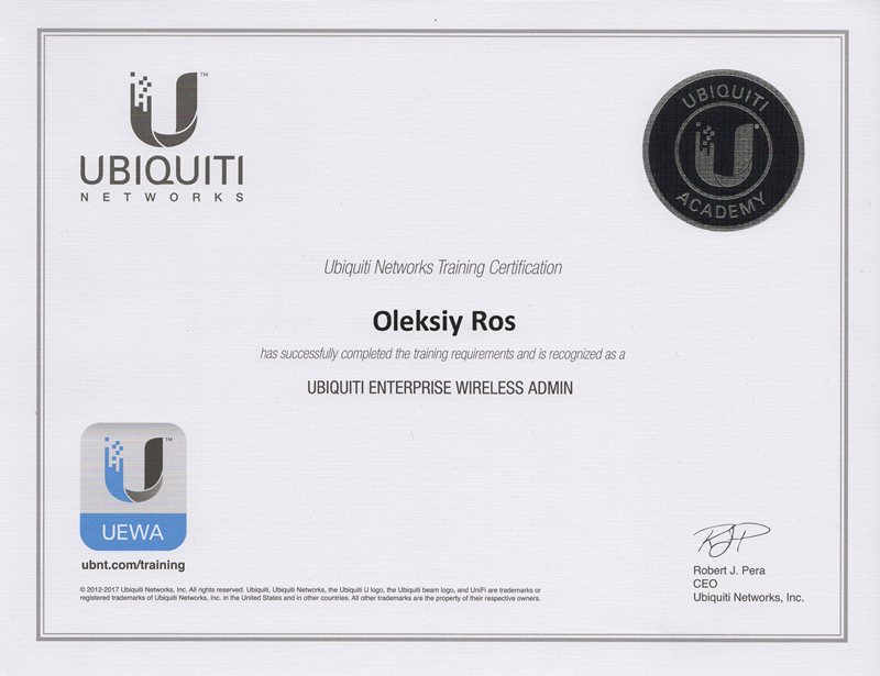 Мы получили Сертификат UNIFI, по созданию WI-FI сетей. Мы прошли сертификацию UNIFI, что подтверждает наш профессионализм по развертыванию WI-FI сетей корпоративного уровня.